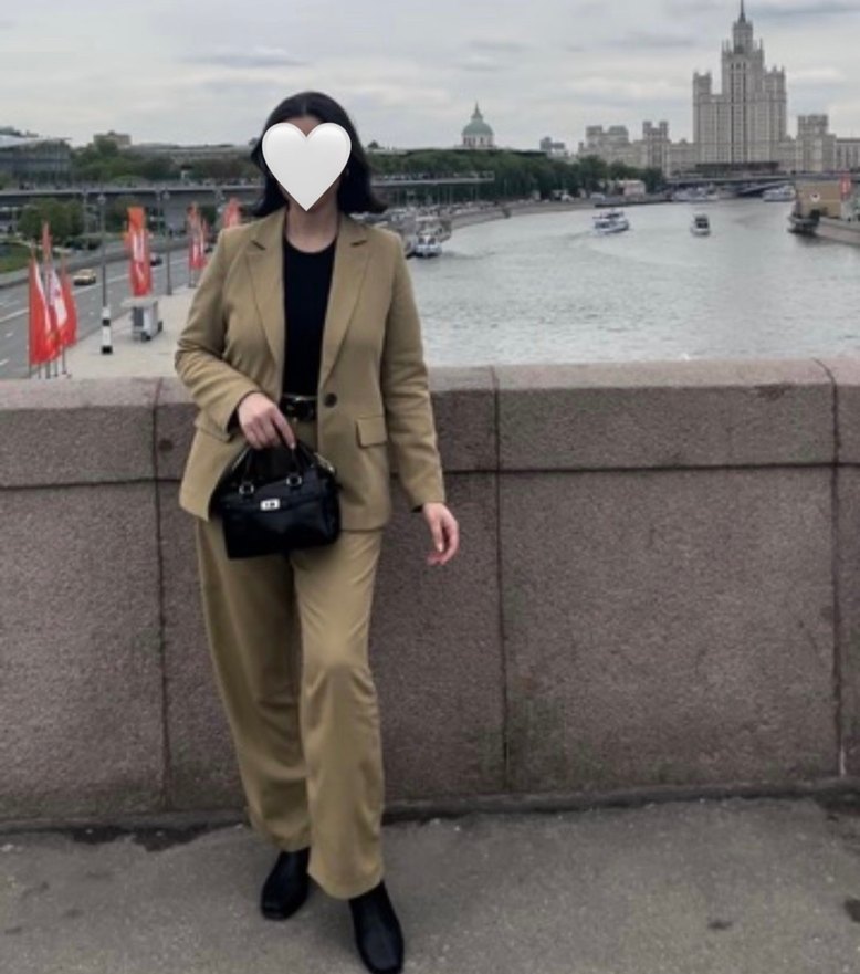 Camel renginde, deri kumaştan yapılmış kadın blazer ceket ve pantolon .Notlu yakalı, uzun kollu ve kemerli. Normal boyda, rahat kesim, ofis ve sokak stiline uygun.