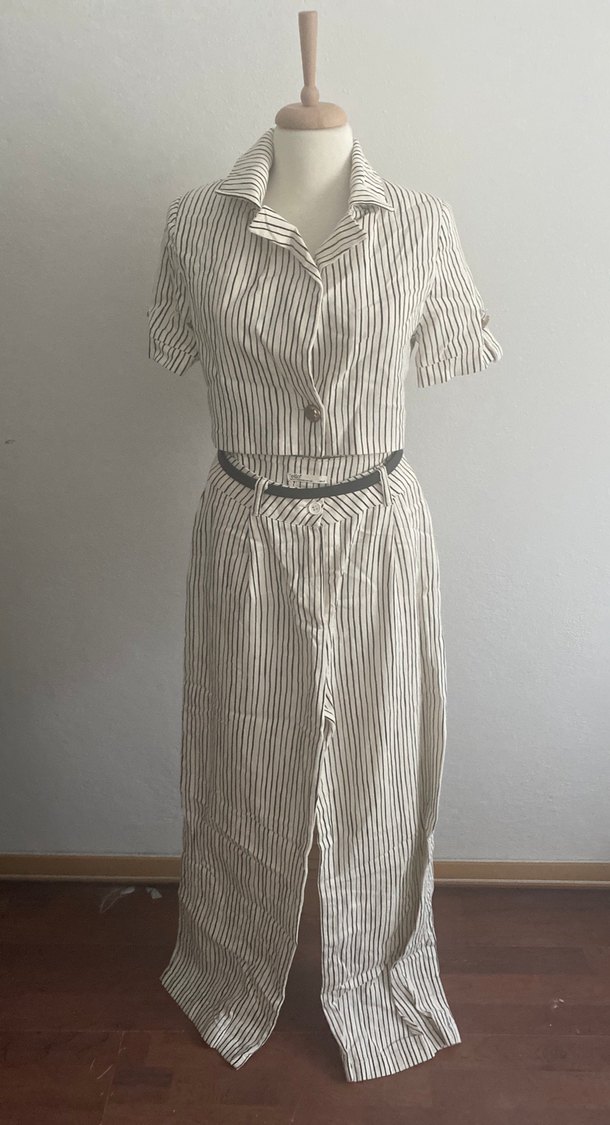Kemerli Çizgili Keten Takım