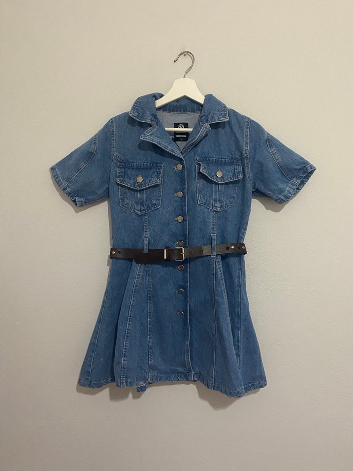 Kemerli Denim Elbise