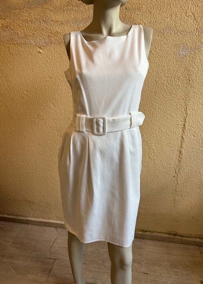 Belden kemerli sıfır kol diz boylarında elbise. Orjinal marka, ürünün hiçbir kusuru yok