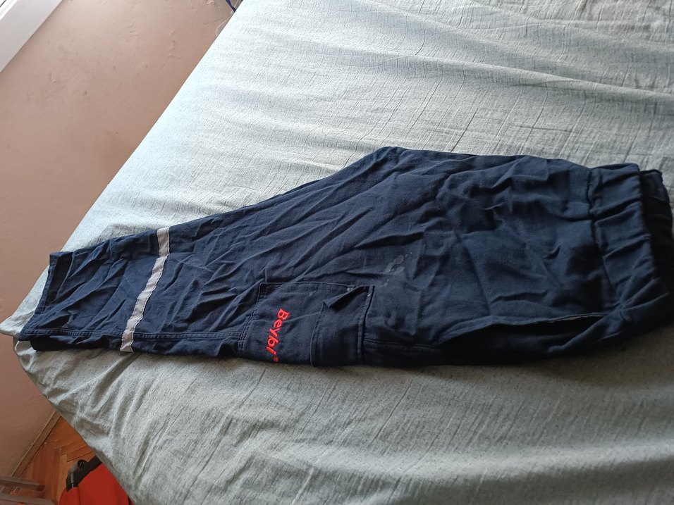 Kemerli, bol kesim erkek kayak pantolonu. Denim kumaştan, normal midi boyda, düz ve lacivert renkte. Outdoor ve streetwear tarzına uygun. çorba döküldü sadece