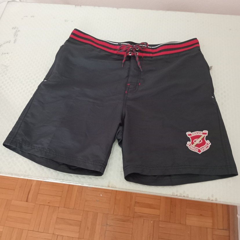Kemerli, baskılı amblemli lacivert renk erkek mini şort mayo, plaj ve sokak stili için uygun. 2kere. giyildi xl beden hiçbir sorunu yok