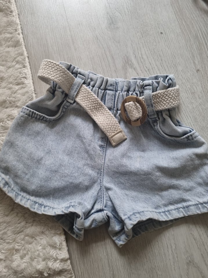 Kemerli bel ve kısa paça detaylı, bol kesim gri denim kız şortu, günlük rahat kullanım için uygundur.