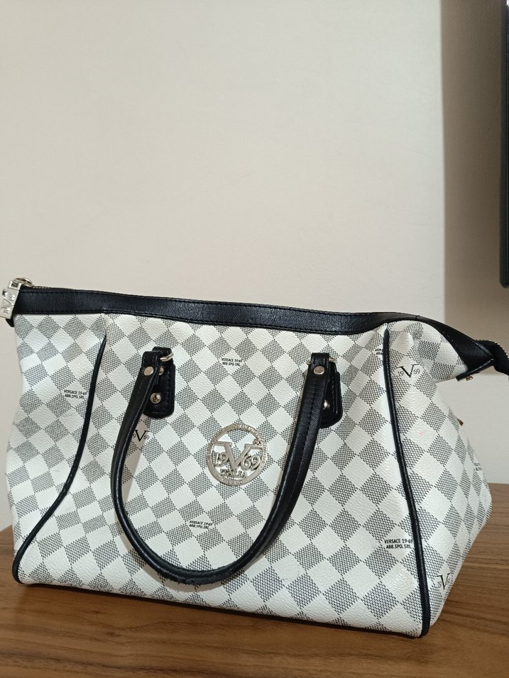 Modern klasik tasarımlı bu kadın çantası, gri kareli deseni ve siyah deri saplarıyla kemerli detaylara sahip. Paris tarzını günlük kullanıma sunar.