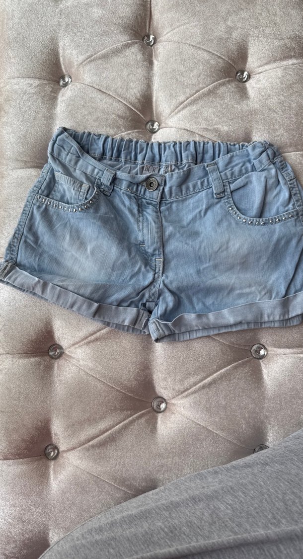 Kemerli bel, cep detaylı gri mavi kot şort. Rahat kesimiyle sokak modasına uygun, günlük şıklık sağlar.