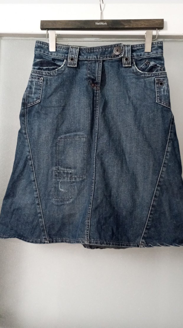 Kemerli Gri Mavi Kot Etek