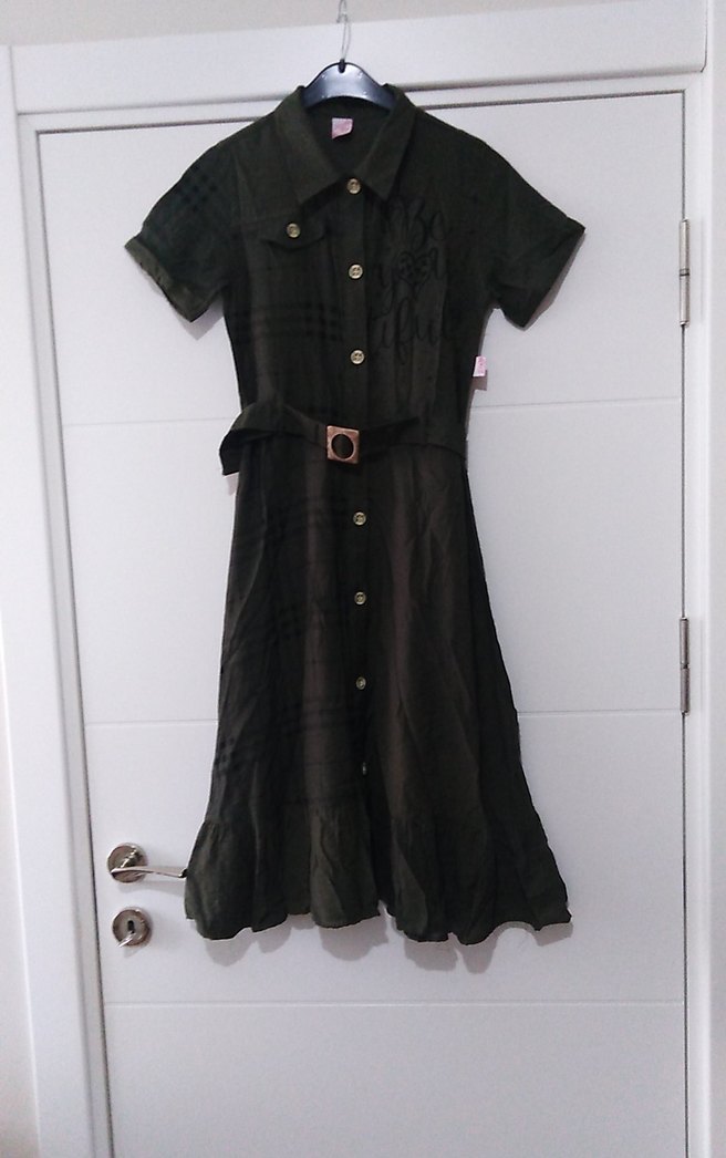 Kemerli bel, kısa kollu haki keten elbise, notlu yaka ve vintage gotik tarzıyla günlük kullanıma uygundur. Uzun ve rahat kesimdir.Bazı kusurları vardır.Renginde bozulma, kol, göğüs, omuz, arka, alt kısmında, etek kısmında bozulma var.14 yaş için uygun elbise giyilebilir durumda detayları fotoğrafta paylaşılmıştır iadeye sıcak bakmıyorum.