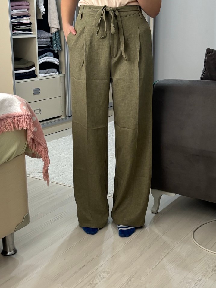 Kemerli haki Kumaş Kadın Pantolon