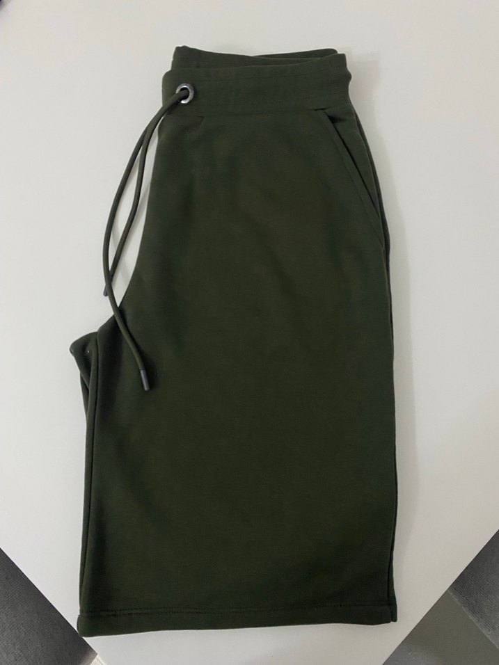 Kemerli, rahat kesim, koyu yeşil erkek midi şort. Düz ve desen içermeyen, sentetik yumuşak dokulu kumaştan üretilmiştir. Günlük kullanım ve sokak stili için uygundur.