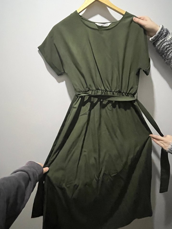 Kemerli Haki Midi Kadın Elbise