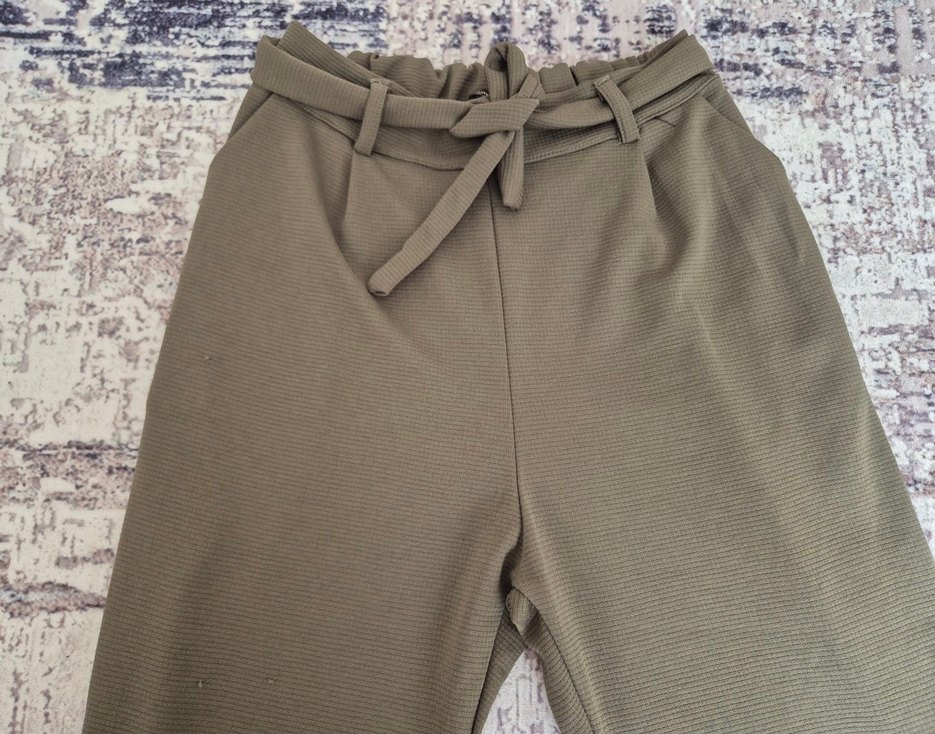Kemerli ve lastikli bel, bol kesim haki yeşili kumaş pantolon. Rahat kumaştan, kullanmadığım için satıyorum.