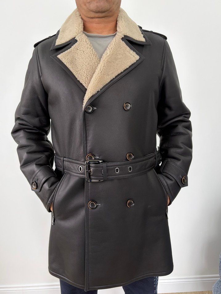 Hakiki Kürk deri kaban, klasik kesim ve kemerli tasarıma sahiptir. Uzun kollu, normal kalıp ve midi boyda olup, günlük kullanıma uygundur. İç kısmı yumuşak Kuzu kürktür