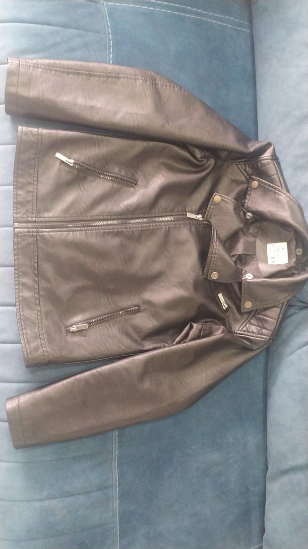 Kahverengi deri biker ceket, kemerli ve kesik yaka detaylı. Normal kesim ve uzun kollu, günlük kullanım için uygundur. unisex 11-12 yaş deri mont kusursuz lcw marka
