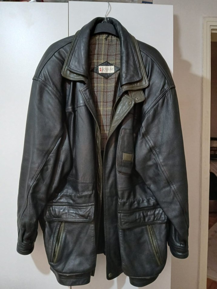 Kemerli bel ve kesik yaka detaylı, uzun kollu kahverengi biker deri ceket. Normal midi boyda, günlük kullanıma uygun sade tasarımda.