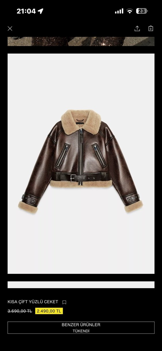 Kemerli bel, kısa boy ve yumuşak astarlı yakaya sahip kahverengi deri ceket. Strappy kollu ve düzenli kesim, Paris tarzı biker stilde.