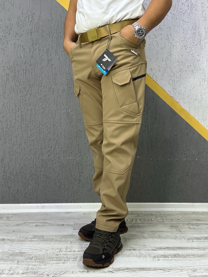 Kemerli, regular fit, açık kahverengi sentetik kumaştan yapılmış erkek kargo pantolon. Sokak stiline uygun kamuflaj desenli, çok cepli, dış mekan kullanımı için ideal. ️