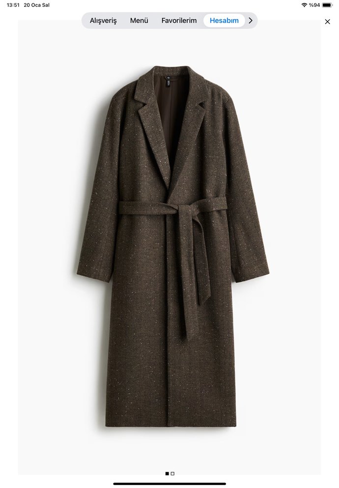 Kahverengi kaban, kemerli bel ve yumuşak dokulu kumaş içerir. Klasik yakalı ve uzun kolludur, serin havalar için uygundur. 2 kez giydim