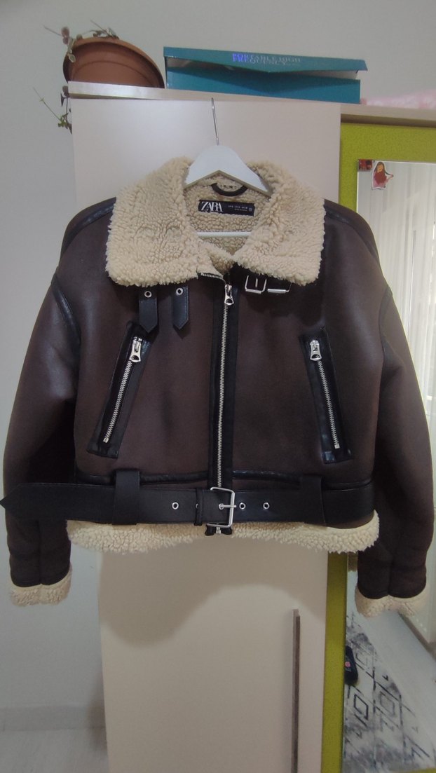 Kemerli Kahverengi Kısa Kadın Mont Ceket Biker Ceket