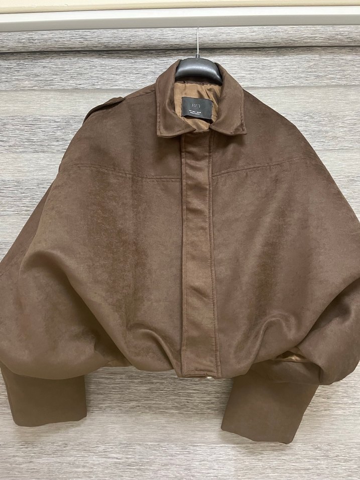 Kahverengi süet kumaştan yapılmış, kemerli ve etek boyu midi uzunluğunda kadın ceket. Notch yaka ve uzun kollu, salaş kesimlidir. Günlük kullanım için uygundur.