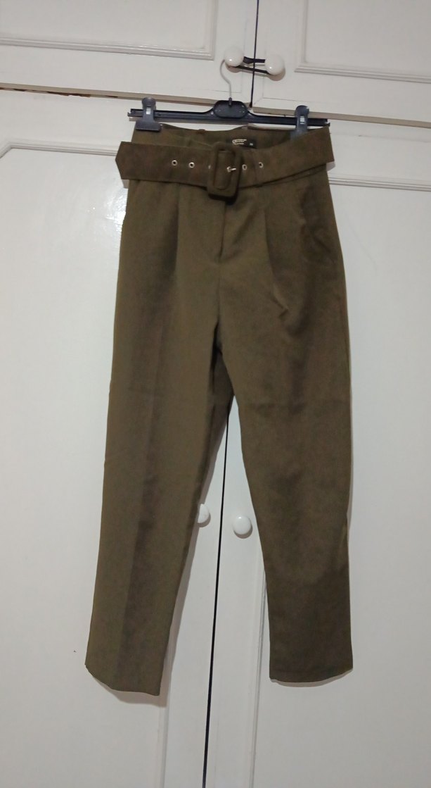 Kemerli haki renk Kadın Pantolon Quzu.