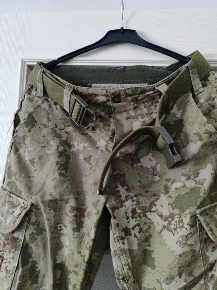 Kemerli, kamuflaj desenli, sentetik kumaştan üretilmiş, rahat kesim erkek mini şort. Sokak stili ve açık hava aktiviteleri için uygundur.