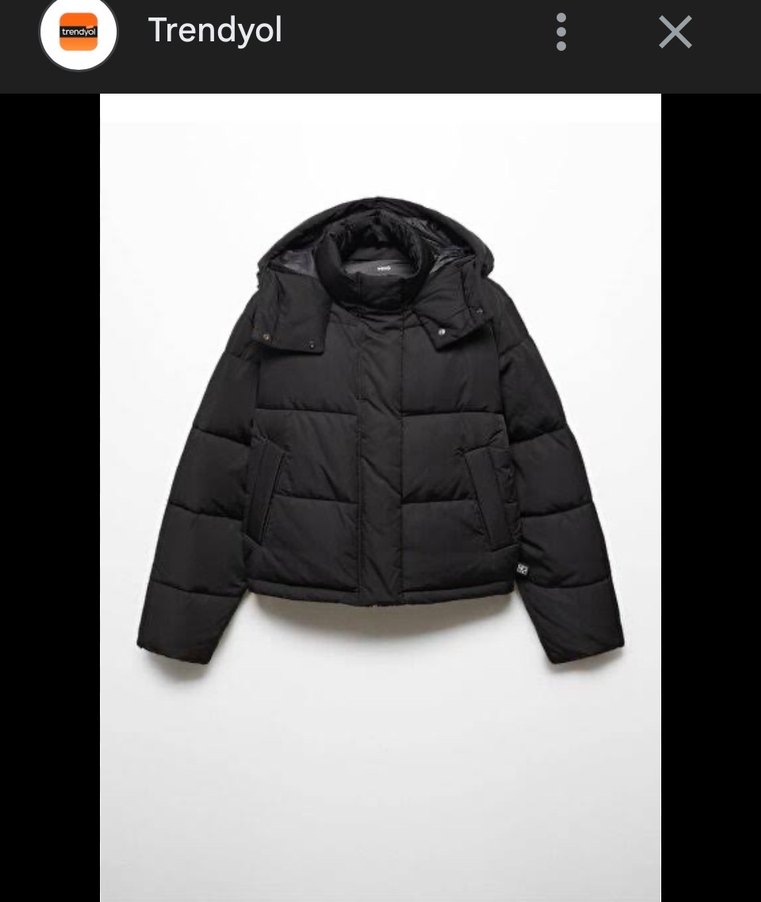 Kemerli ve kapüşonlu, yumuşak ve sıcak kumaştan yapılmış siyah, kısa kesim, fitted kadın kışlık mont. Strappy kollu ve gündelik kullanıma uygun.