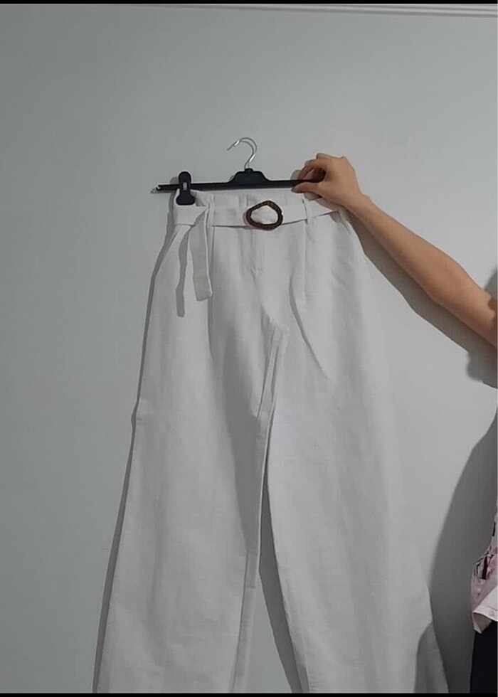 Kemerli keten pantolon