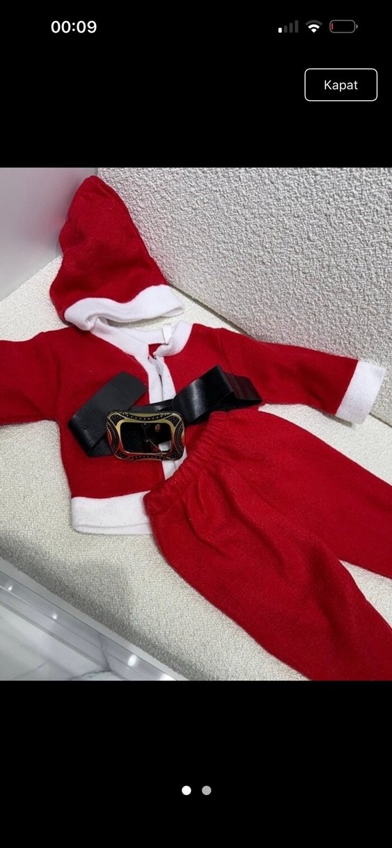 Kemerli, kesimi vücuda oturan kırmızı çocuk kostümü, kesik yaka ve renkli sokak stili detaylarına sahip.