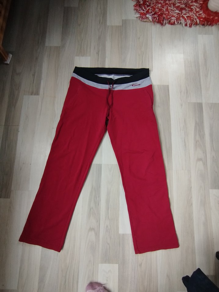 Kemerli, koyu kırmızı renkte, sentetik kumaştan yapılmış, normal midi boy, desen içermeyen, spor ve sokak stiline uygun kadın eşofman altı.