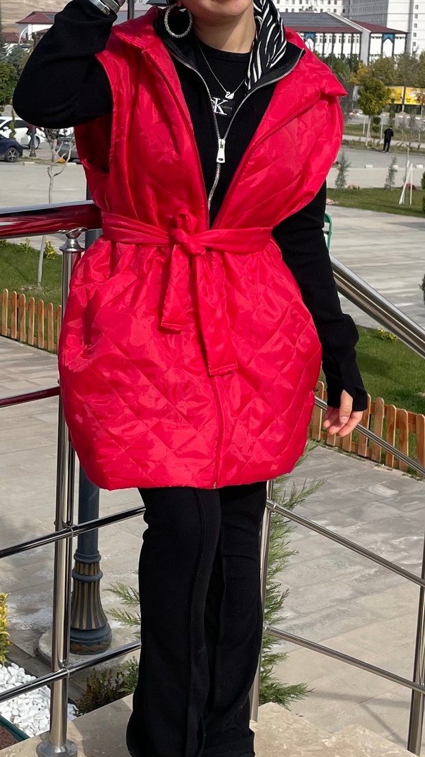 Kemerli Kırmızı Midi Kadın Yelek