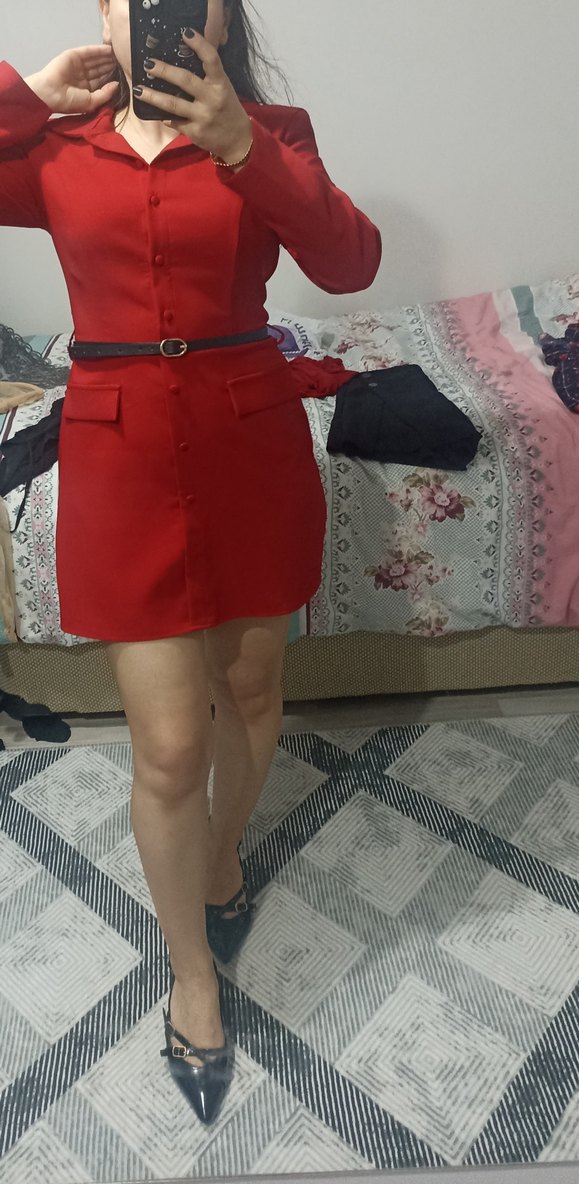 Kemerli, kırmızı mini tulum hiç giymedim orijinal kemeri ikinci fotodakini göndericem