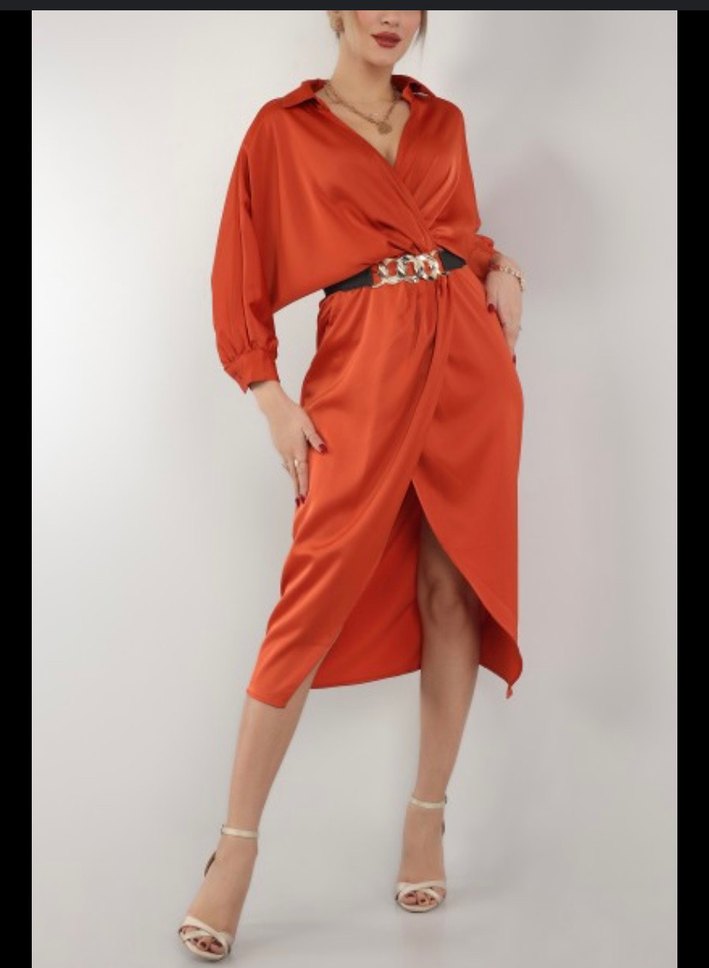 Kemerli Kırmızı Parlak Uzun Kadın Elbise