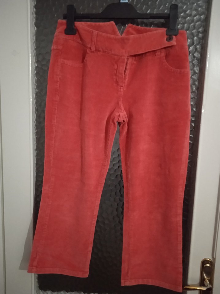 Kemerli, kırmızı süet kumaştan, midi boy ve dar kesim kadın pantolon. Günlük sokak stili için rahat ve şık.