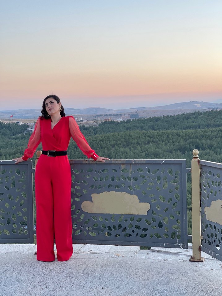 Kemerli Kırmızı Uzun Kadın Tulum