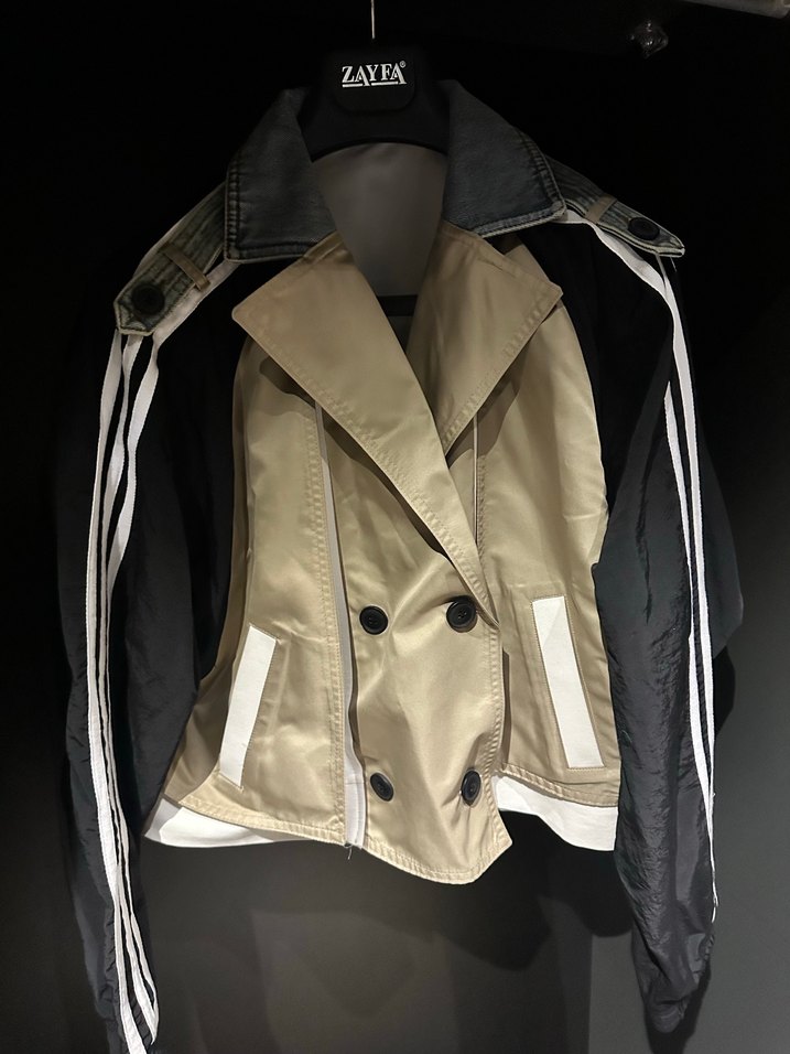 Kemerli, Kısa Kesim, Bej-Siyah Kadın Ceket