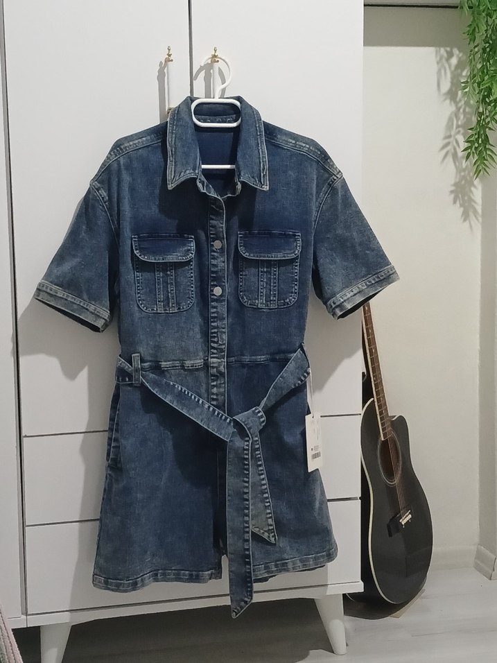 Kemerli Kısa Kot Tulum