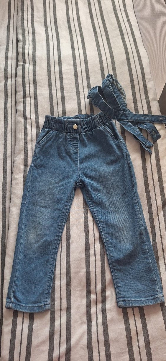 Kemerli bel ve regular fit kesime sahip kız çocukları için mavi denim pantolon. Sokak tarzı için uygun, desensiz ve rahat bir model.