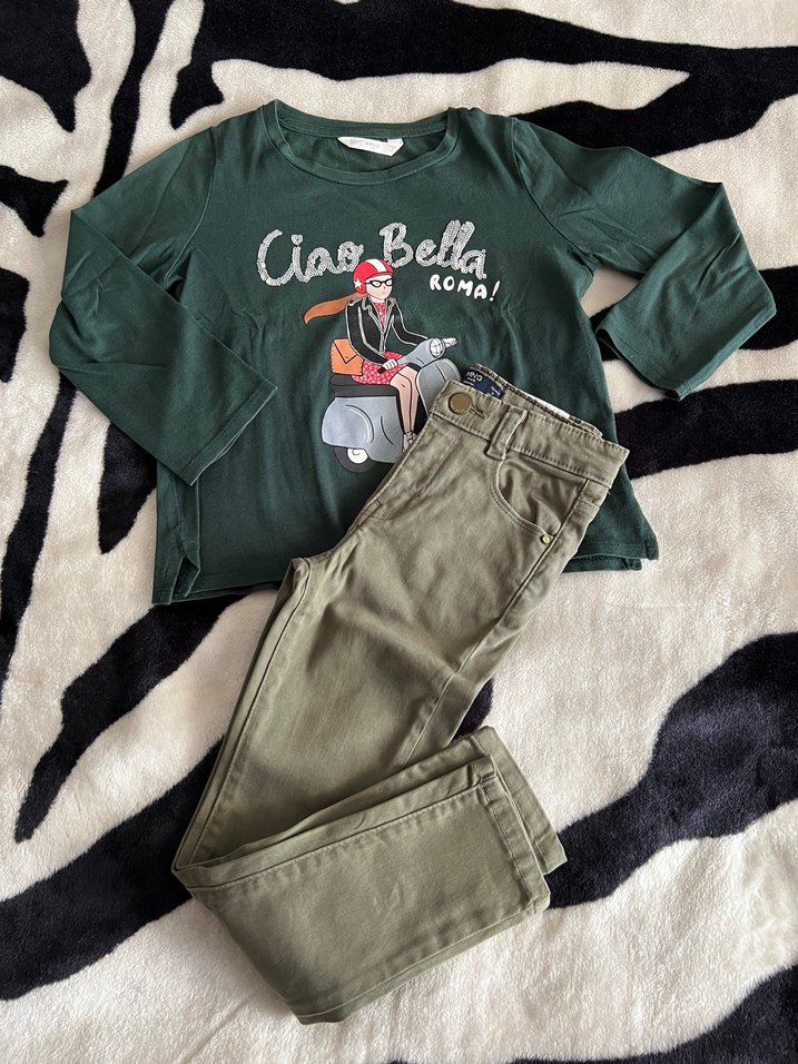 Kemerli bel ve geniş kesime sahip bu kız çocuk pantolonu, yumuşak pamuk kumaştan üretilmiştir. Haki rengi ve baskılı deseniyle trend sokak stili sunar.