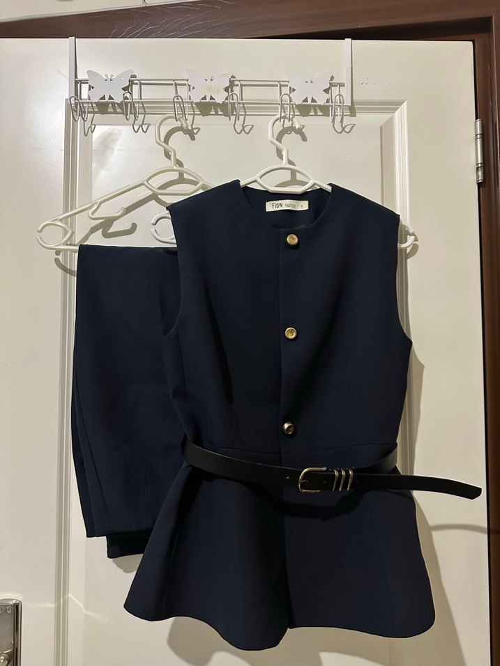 Kemerli Klasik Lacivert Kadın Takım