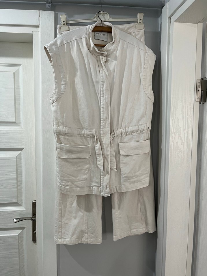 Kemerli Kolsuz Keten Beyaz Mini Yelek alt üst kantolon takım