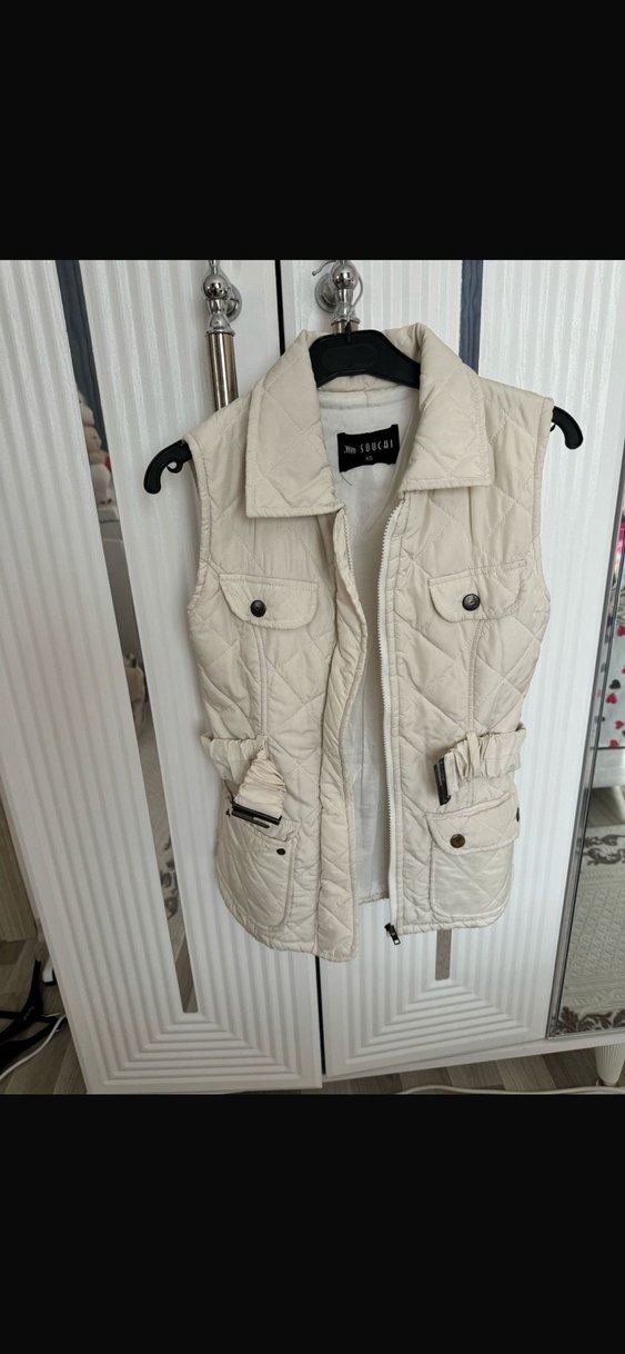 Kemerli Kolsuz Kısa Beyaz Kadın Yelek