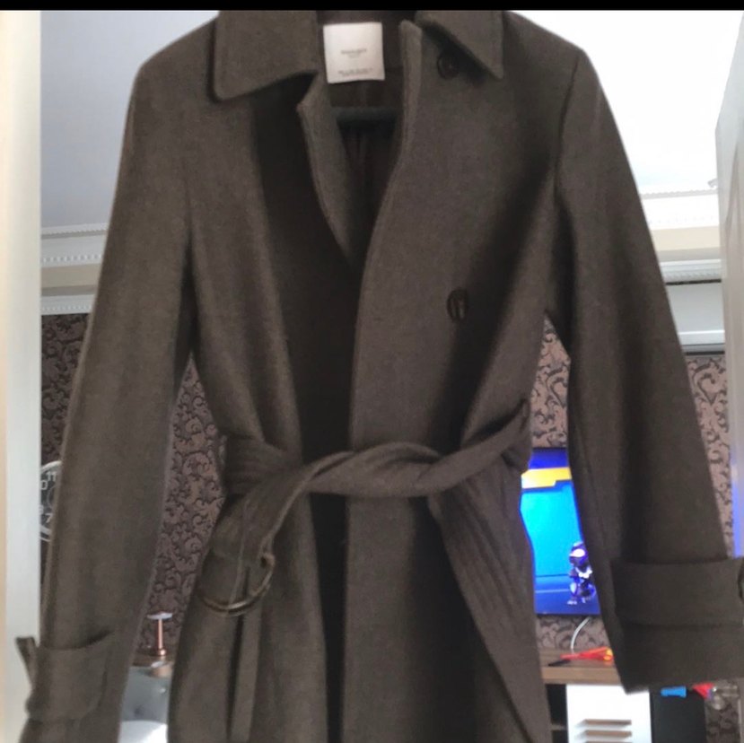 Kemerli ve düğmeli koyu kahverengi kaban, yumuşak ve sıcak kumaştan yapılmıştır. Uzun kollu ve klasik yakalıdır.