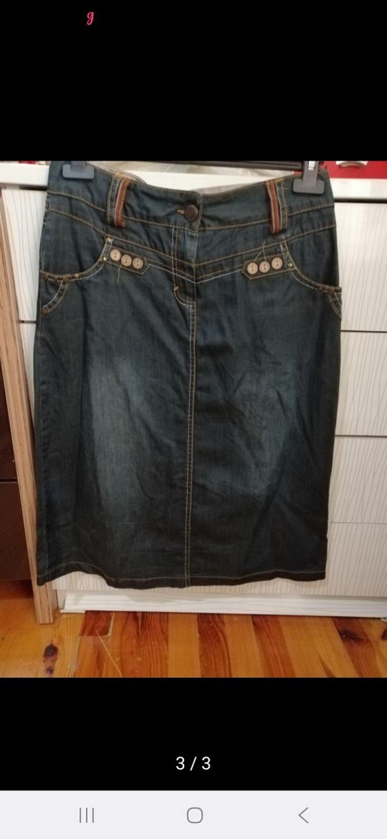 Kemerli, koyu kahverengi denim midi etek, rahat ve günlük sokak stili için uygundur. Ceplerinde düğme detayları bulunur.