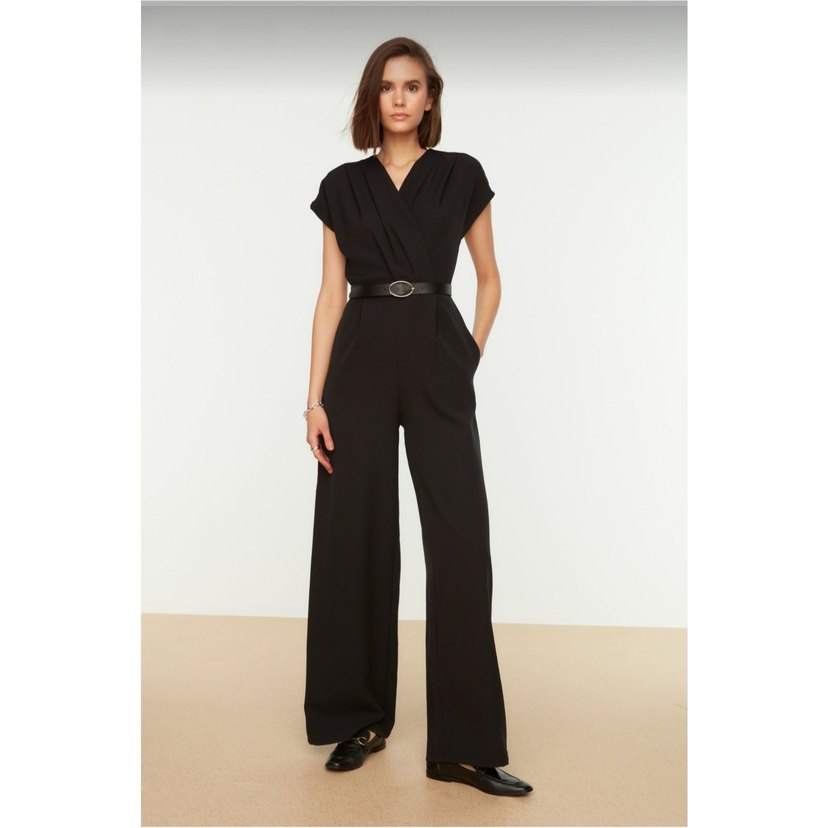Kemerli Kruvaze Yaka Geniş Paça Tulum