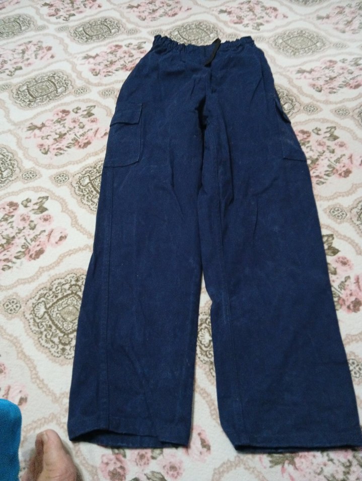 Kemerli, bol kesim ve midi boy lacivert denim pantolon. Rahat ve günlük sokak stili için uygundur.