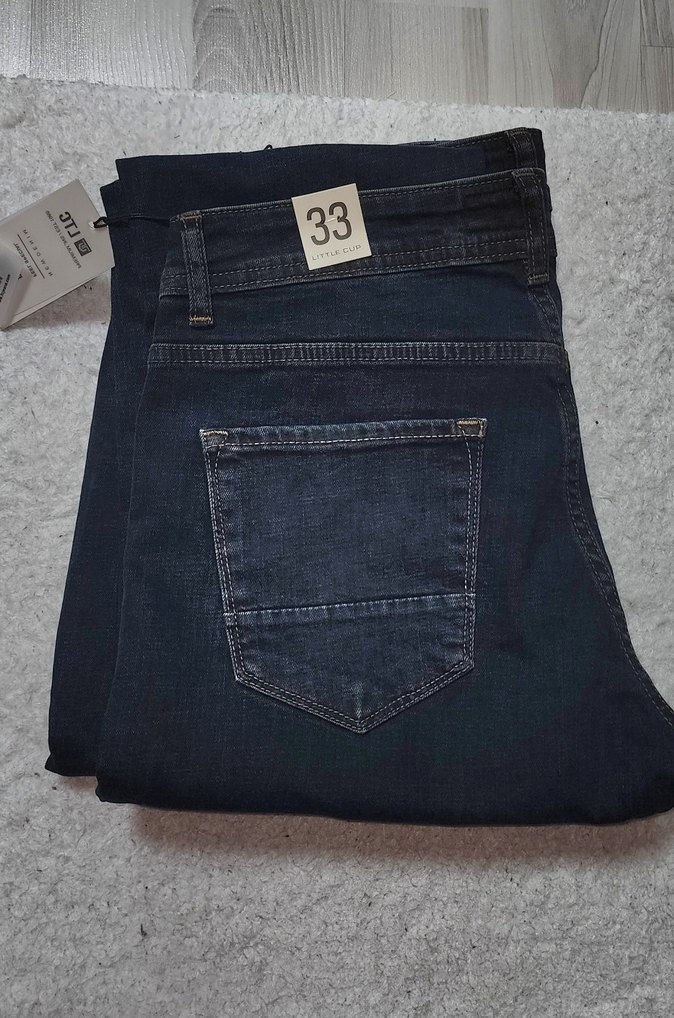 Kemerli, lacivert renkte, regular fit erkek kot pantolon. Streetwear tarzında, normal boyda ve 33 beden.