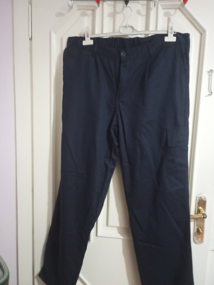Kemerli, regular kesim, lacivert renkli, sentetik kumaştan yapılmış erkek spor pantolon. Outdoor için uygun. sol yanda cep var. boyu 110cm. 54 beden. beden seceneğinde 54 olmadığından XXL işaretledim.