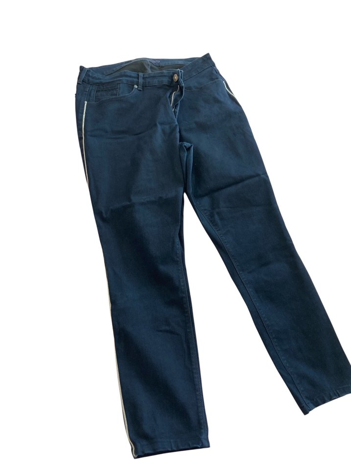 Kemerli, normal boy, regular fit lacivert kadın denim pantolon. Günlük kullanım için rahat ve şık bir sokak stili sunar. 44 beden esnek likralı cokeahat bir model