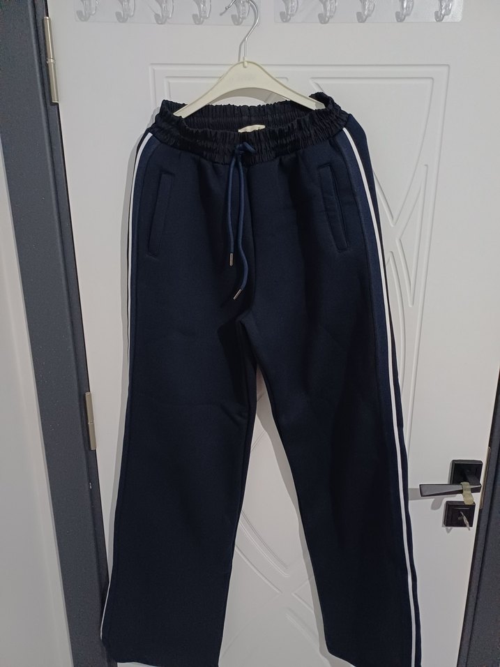 Kemerli, yanları çizgili, rahat kesim lacivert eşofman altı, yumuşak ve sıcak kumaştan üretilmiştir.Üst takımı mevcut sayfada ekli Üst M beden