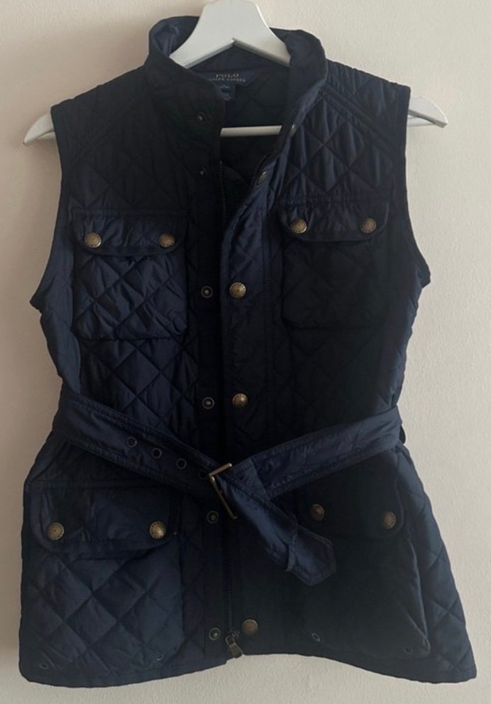 Kemerli, kolsuz lacivert yelek, oturan kesim ve yaka detayına sahiptir. Sentetik kumaştan üretilmiş, günlük kullanıma uygun sokak stili yelektir. S beden yazıyor ama dar olduğu ıcın xs çok uygun olur